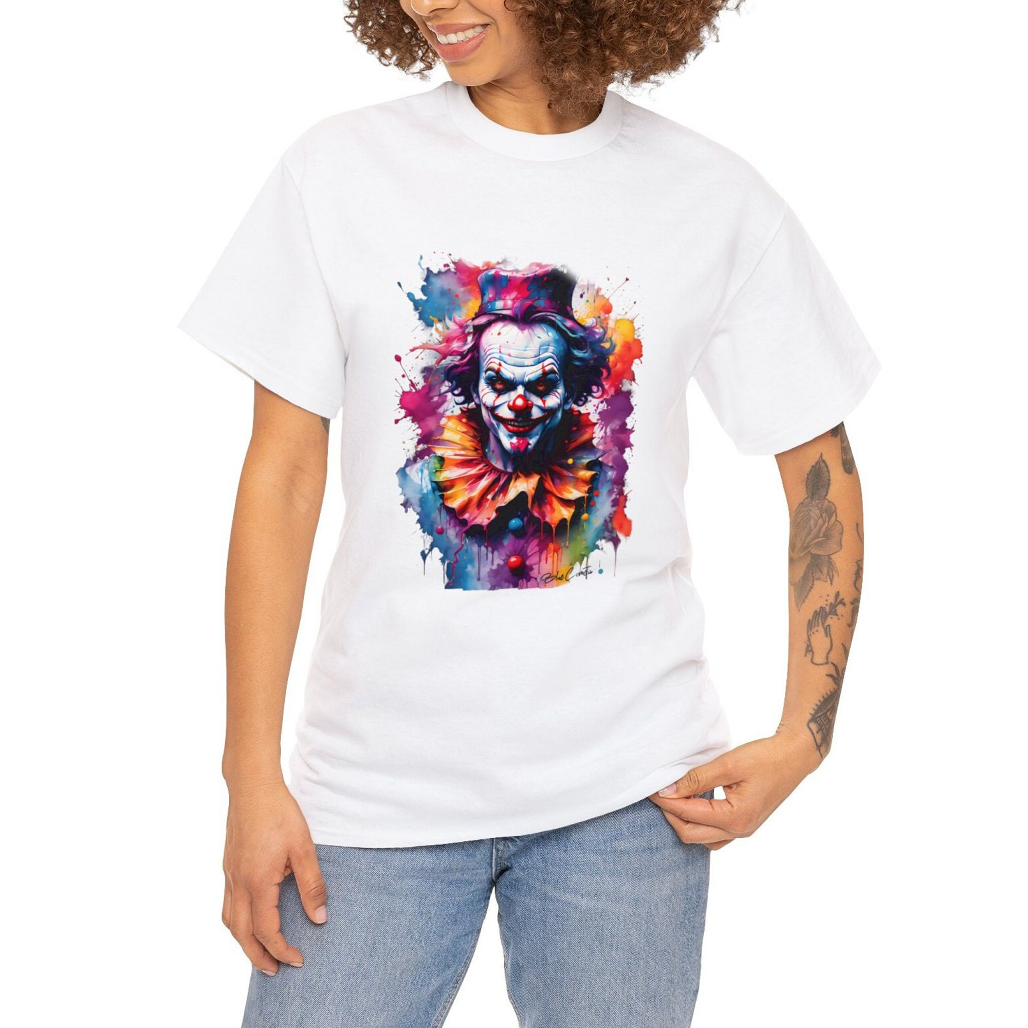 Palyaço Unisex T-shirt hem kadın hem de erkekler için uygundur. Ürünü almadan önce lütfen beden tablosuna bakınız. Bedenler siyah ve beyaz renklerde farklılık göstermektedir.