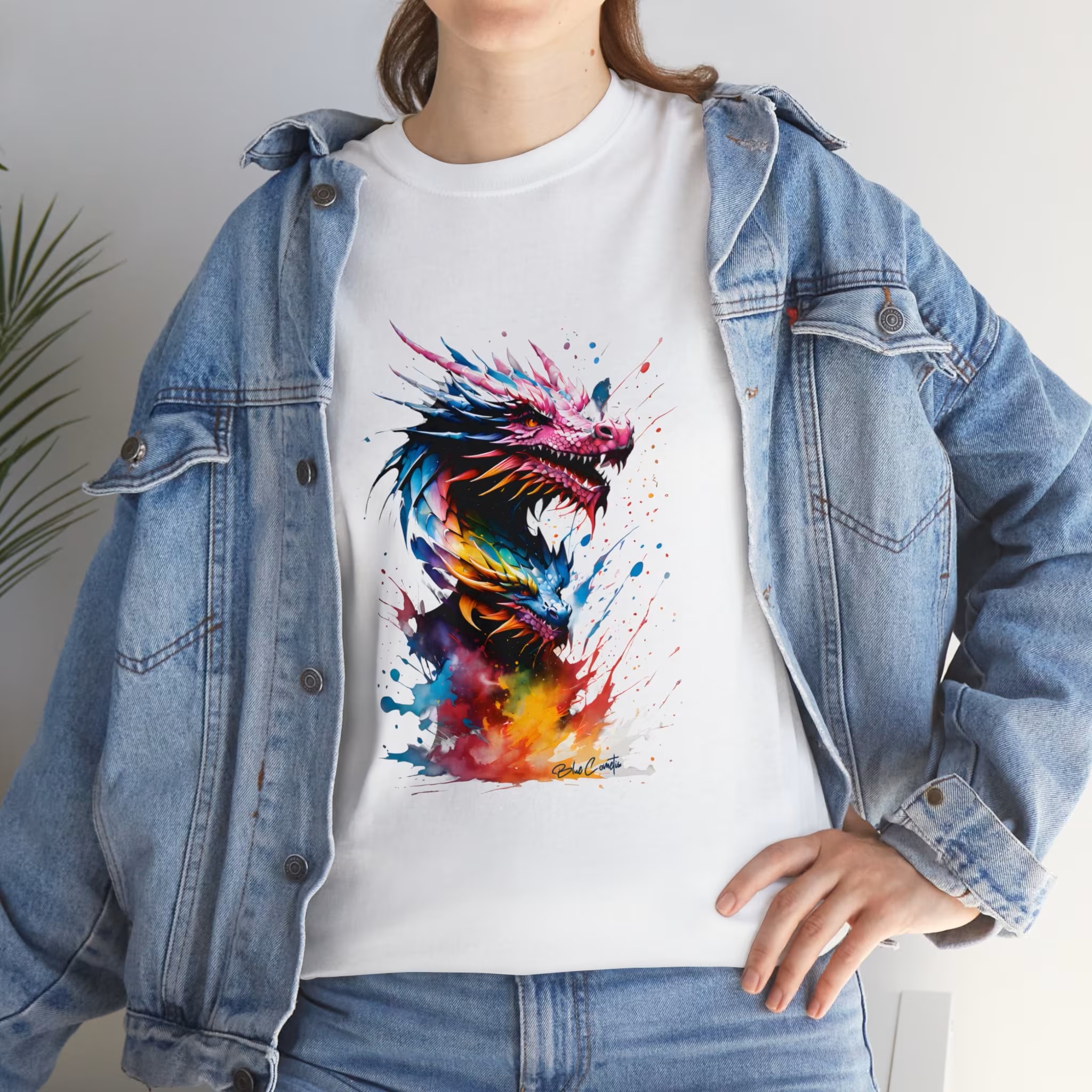 Renkli Ejderha-1 Tasarımlı Unisex T-Shirt