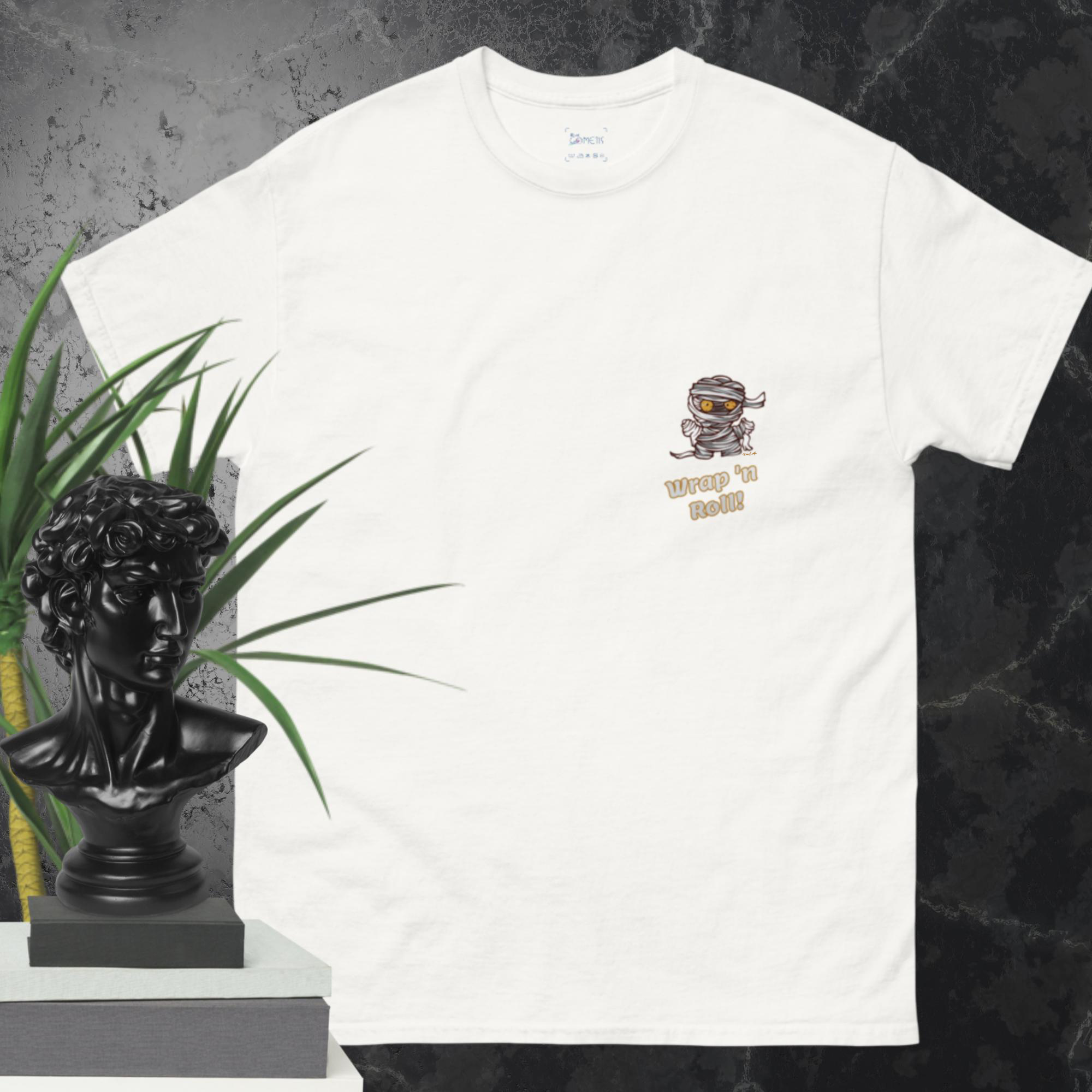Mummy Wrap 'n Roll Unisex T-shirt hem kadın hem de erkekler için uygundur. Ürünü almadan önce lütfen beden tablosuna bakınız. Bedenler siyah ve beyaz renklerde farklılık göstermektedir.